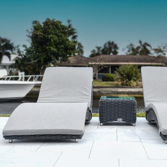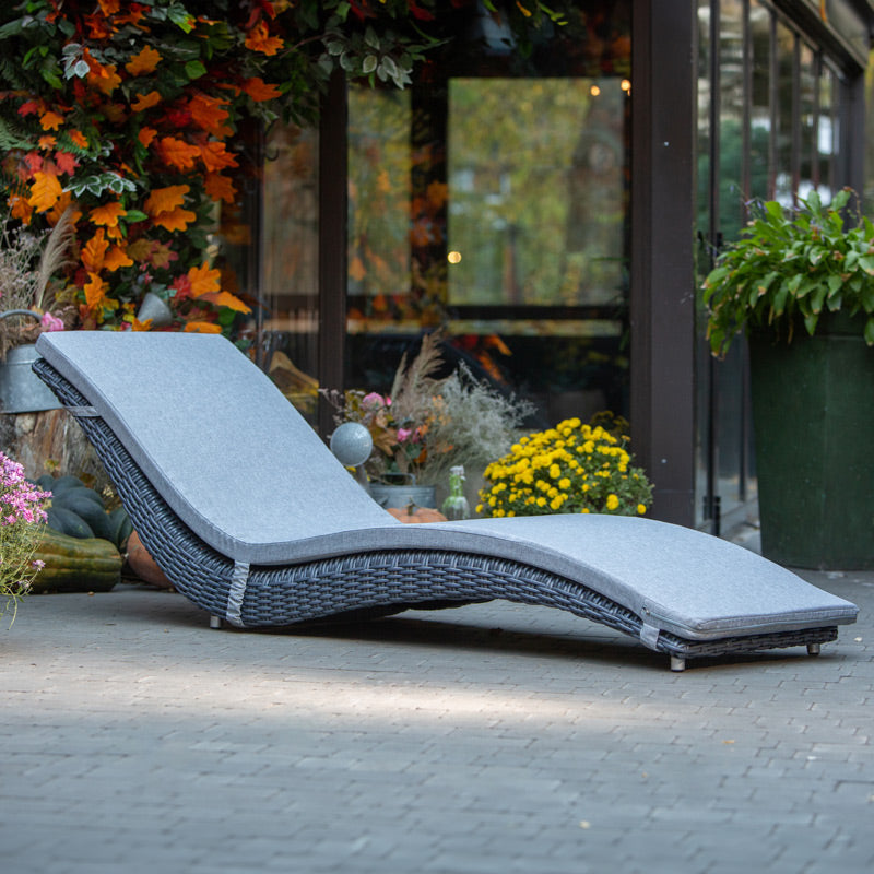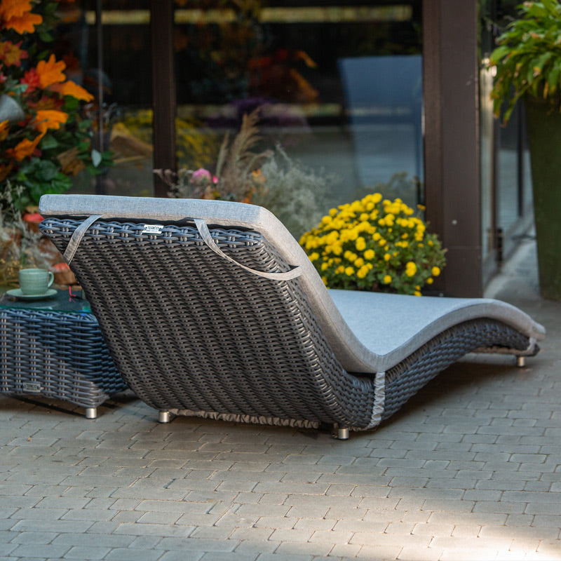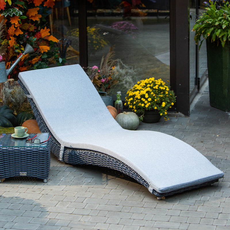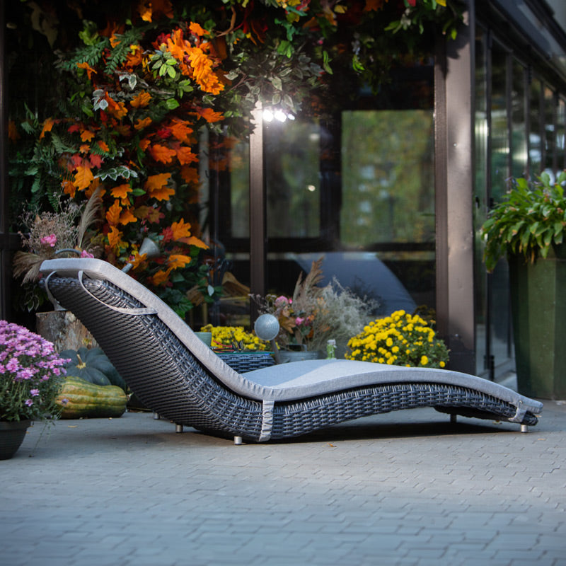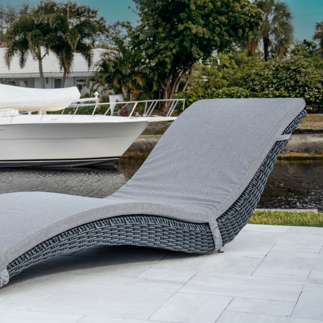 Shine a little sunny style on your terrace with this clean-lined chaise lounge. It's crafted with an aluminum frame that's wound in textured gray tape with a wicker-inspired weave. It strikes a sinuous silhouette and features a light and airy gray shade that feels so current. This patio chaise lounge holds up to sunny and wet weather without fading or rusting, so it'll stay looking crisp through long afternoons by the pool.