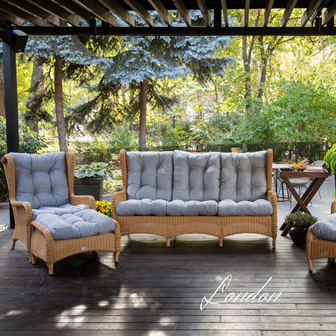 "LONDON LUX LOUNGE" Beige Wicker Outdoor Sofa with 2 Chairs, 2 Poufs And Table - 5 Seat